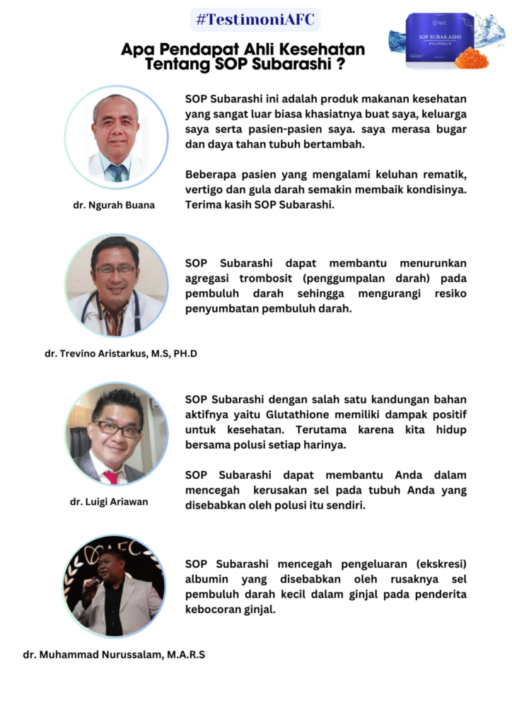 SOP Subarashi adalah makanan super yang terbuat dari bahan-bahan alami. Produk dari farmasi non kimia Jepang, AFC.